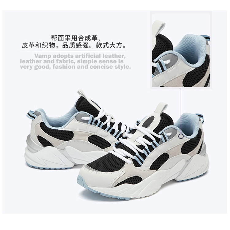 Vamp adopts artificial leather,leather and fabric,simple sense is very good,fashion and concise style.The shoes shape is three-dimensional and wide,and the sole is anit-skid,wear-resistant, comfortable and cushioned.
